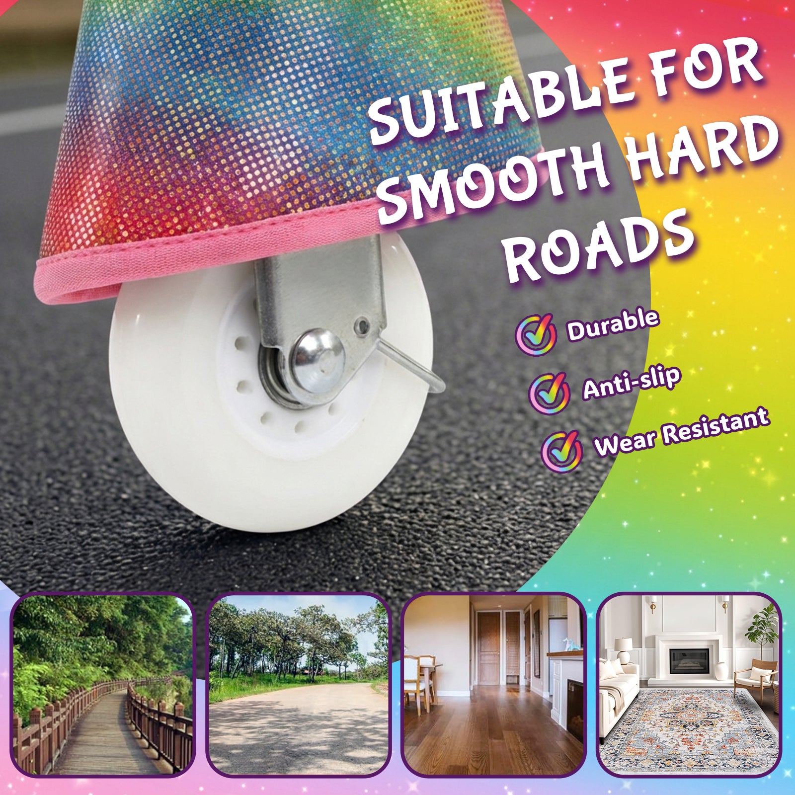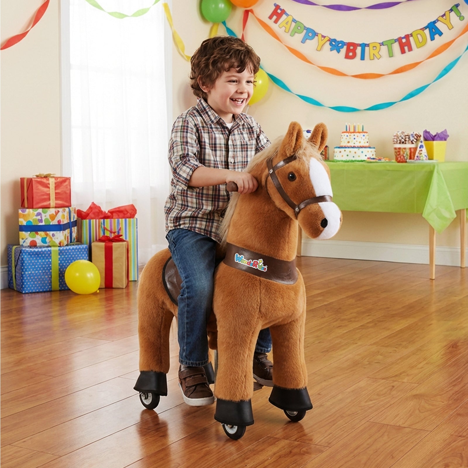 WondeRides Ride On Pony is designed for multiple surfaces. The smooth-gliding wheels ensure a steady ride and are easy to clean after outdoor play.