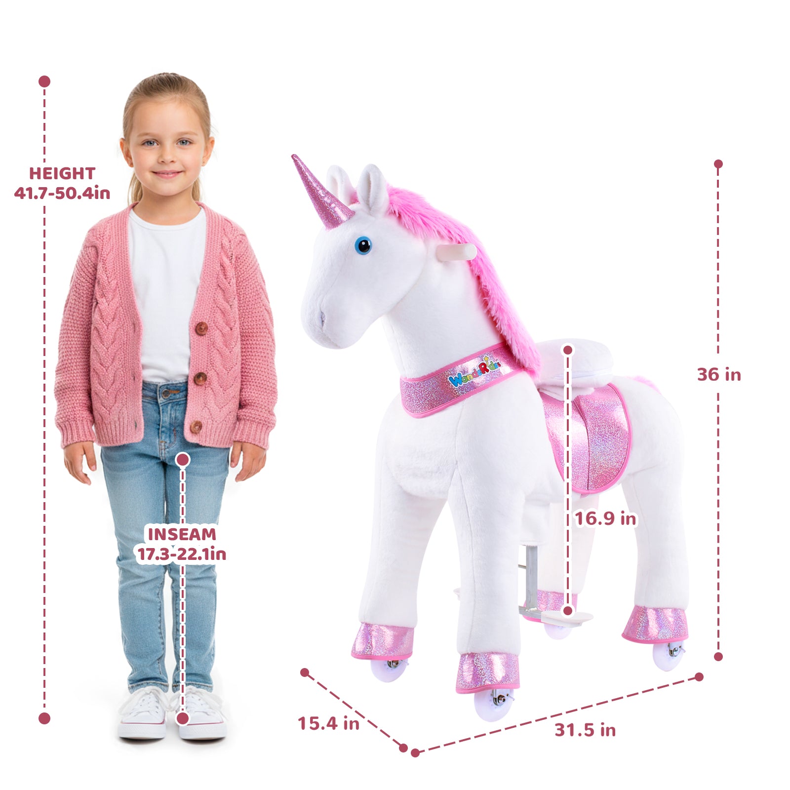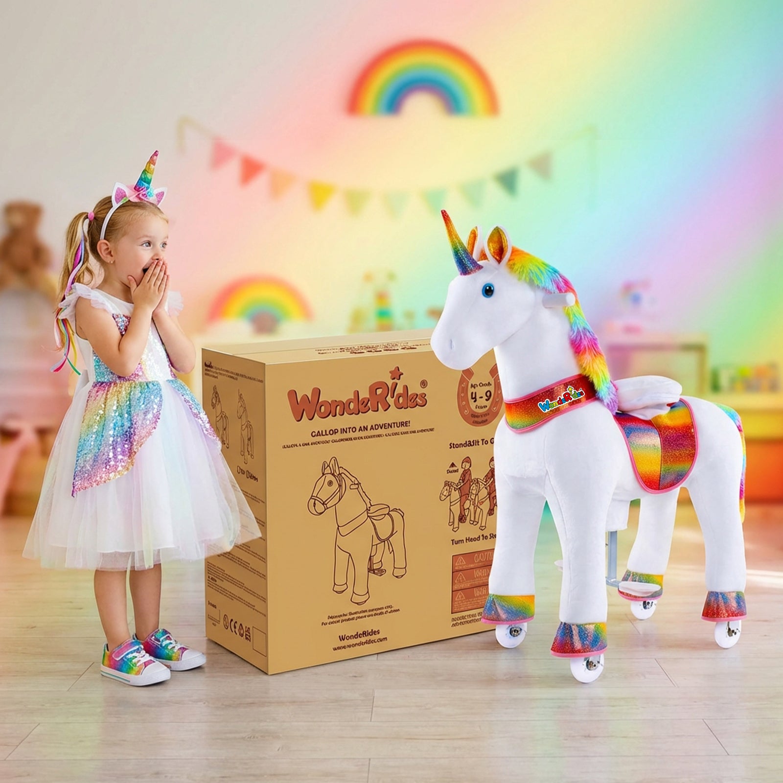 WondeRides Ride-On Unicorn & Horse – Mechanical Walking Horse for Kids 4-9