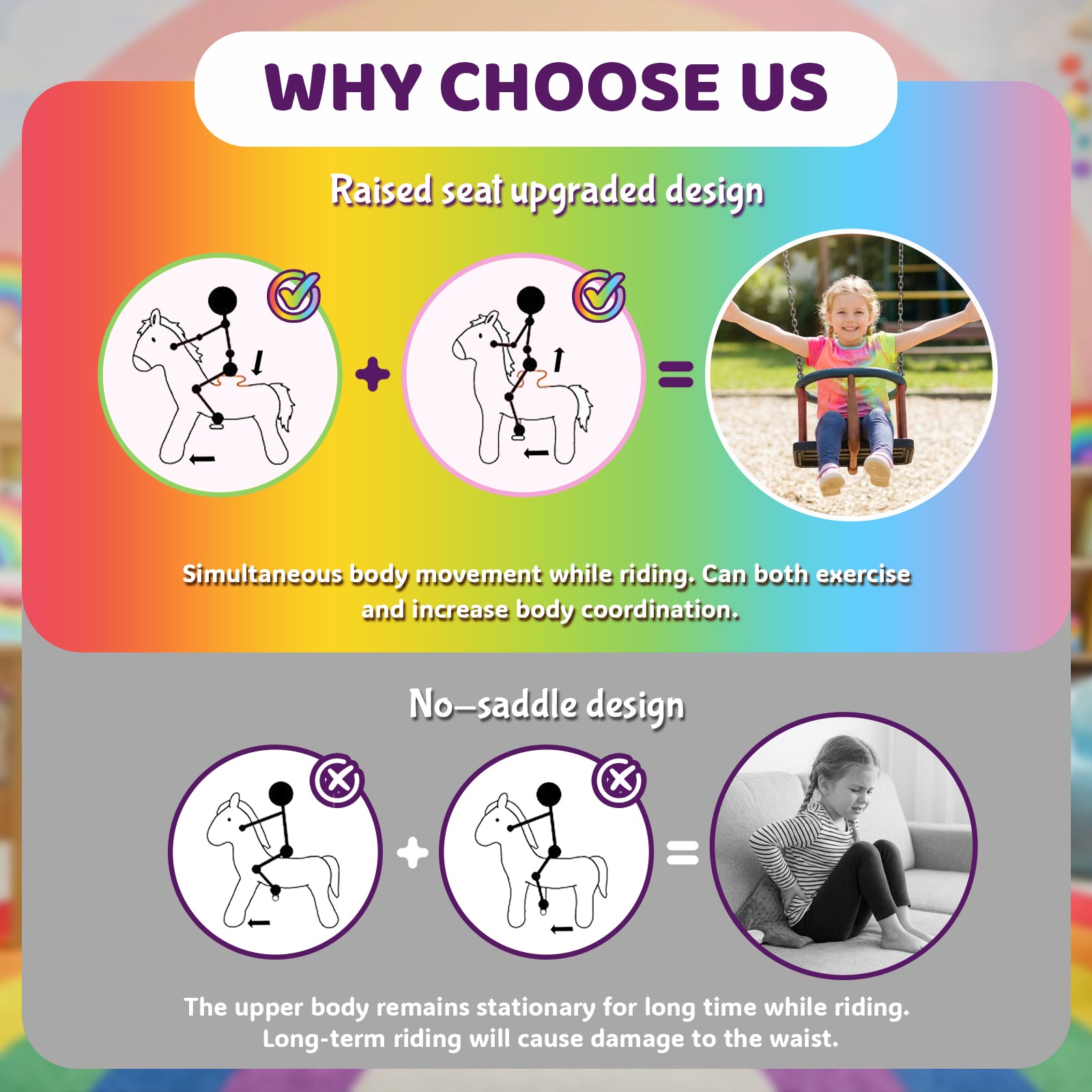 WondeRides Riding Horse Toy engages kids’ entire body, building strength, improving flexibility, and enhancing coordination. It helps reduce screen time, promoting healthier habits through physical movement.