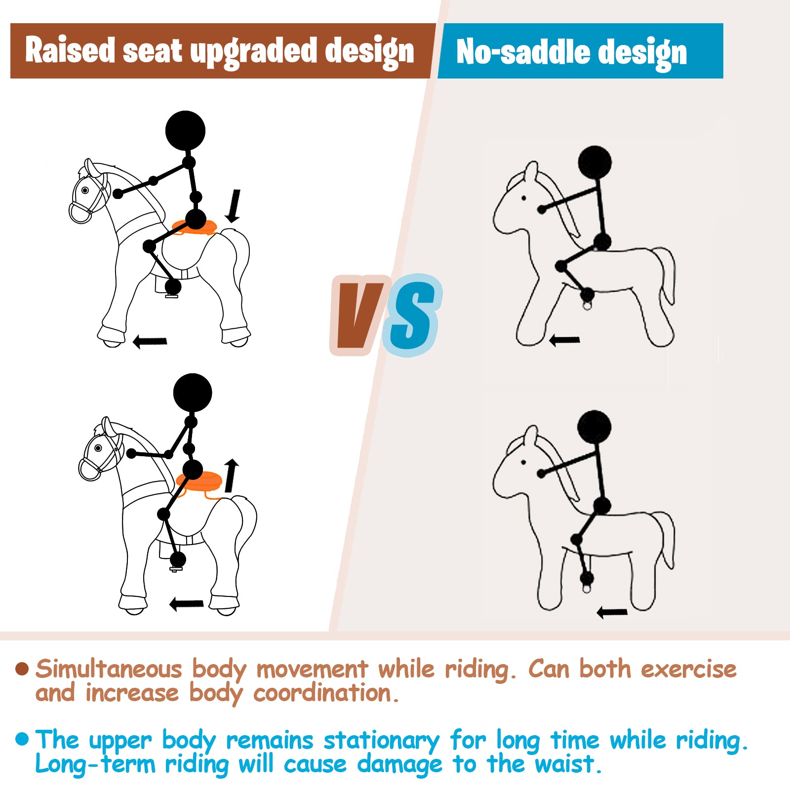 WondeRides Ride On Horse features premium soft plush fur that's eco-friendly and gentle on kids’ skin. The flame-retardant padding and solid steel frame ensure a safe, cozy ride. The advanced mechanical system lets kids feel like riding a real pony.