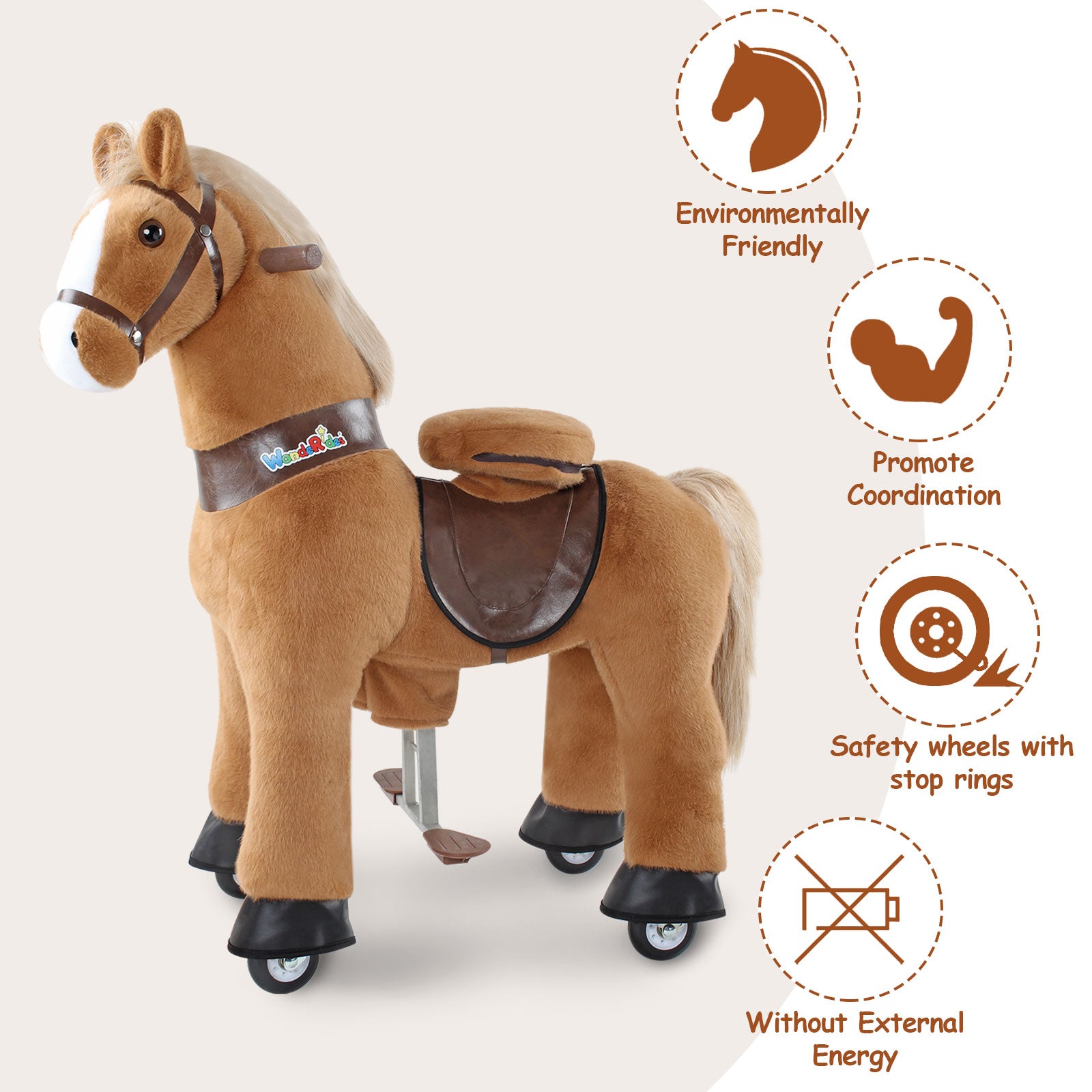 WondeRides Ride-On Horse is easy to assemble and simple for children to ride. Just step on the foot pedal to make the pony move forward and steer using the handlebar.